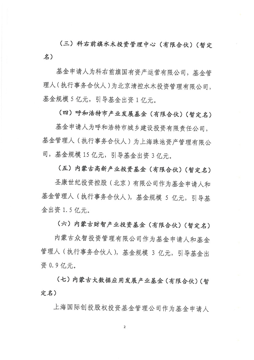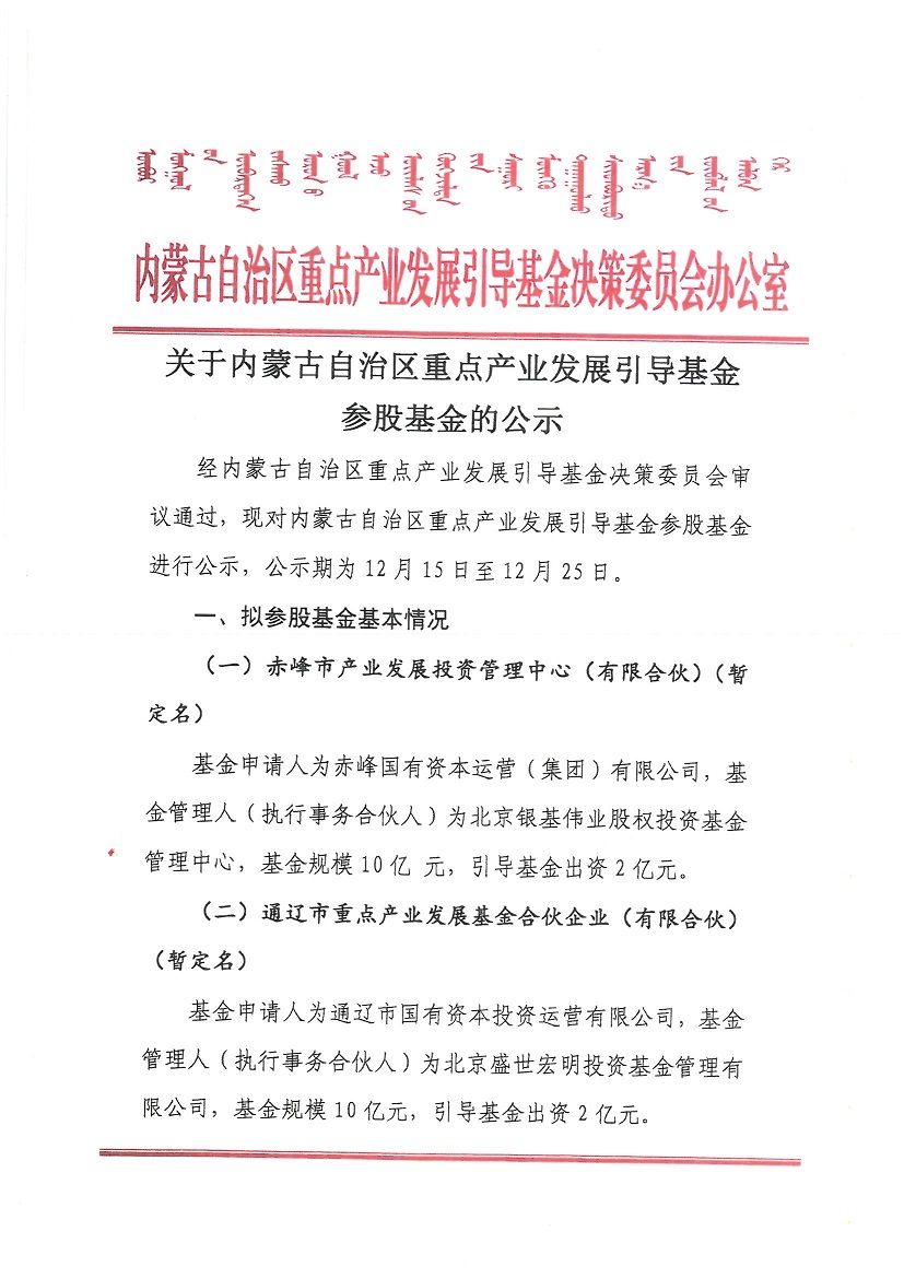 关于内蒙古自治区重点产业发展引导基金参股基金的公示