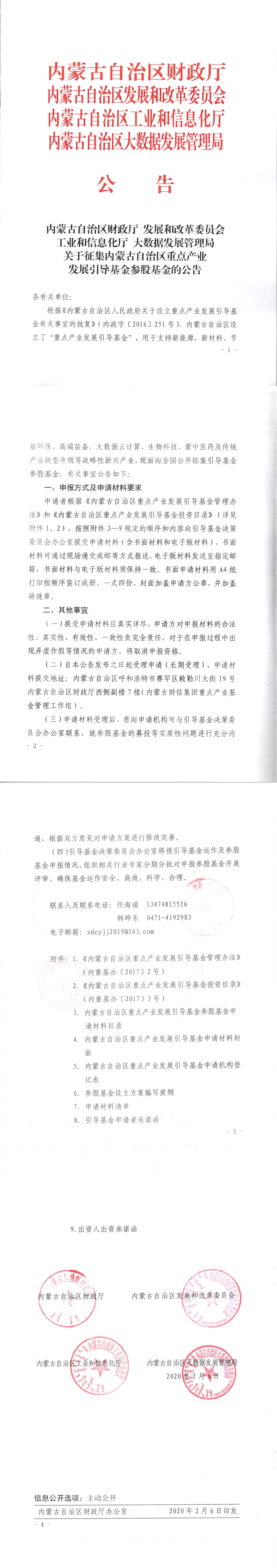 内蒙古自治区财政厅 发展和改革委员会 经济和信息化厅 大数据发展管理局 关于征集内蒙古自治区重点产业发展引导基金参股基金的公告