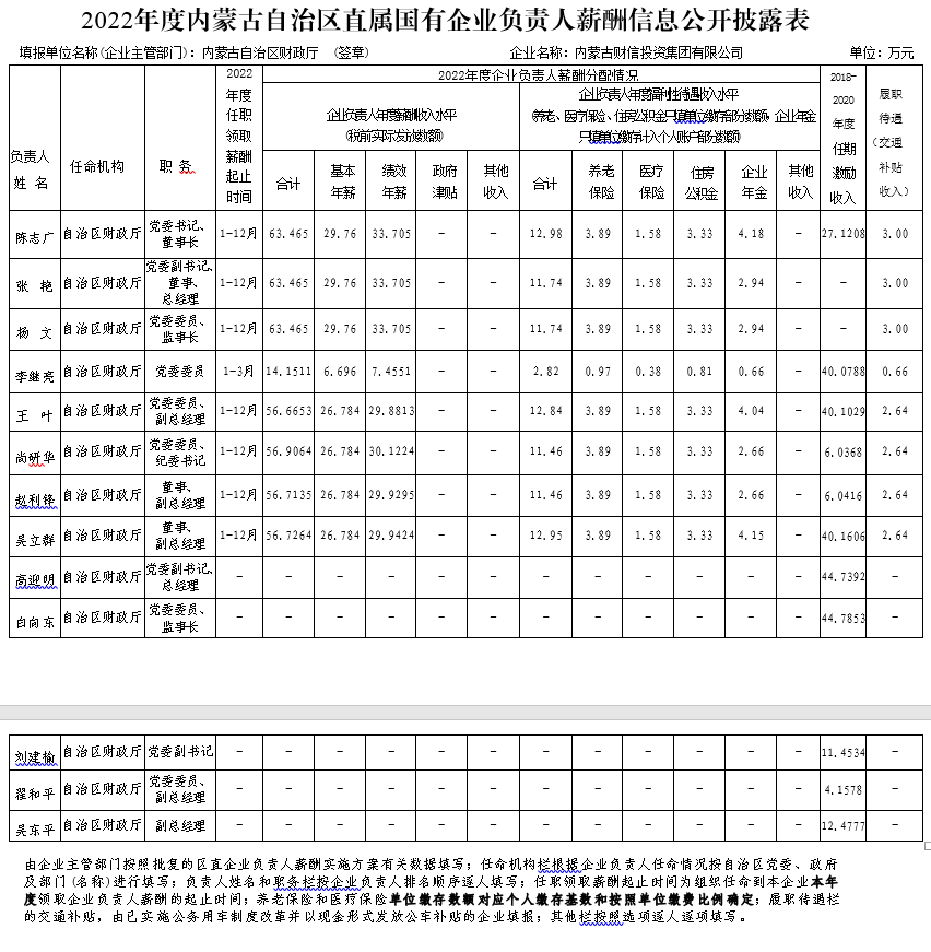 2022年度内蒙古自治区直属国有企业负责人薪酬信息公开披露表